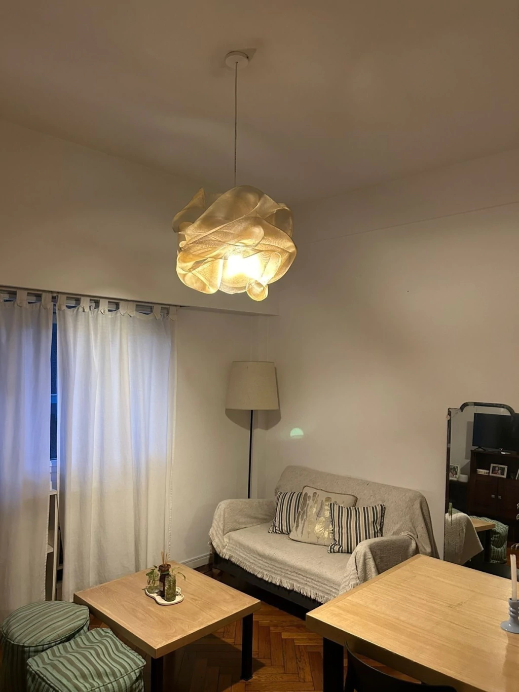 La lámpara Aura es una pieza única de diseño contemporáneo, fabricada con malla metálica modelada y pintada a mano, lo que le otorga un carácter exclusivo y artesanal. Su estructura asimétrica crea un juego de formas y sombras que aporta una textura única al ambiente. Ideal para quienes buscan una decoración original y elegante, esta lámpara no solo ilumina, sino que también se convierte en un elemento decorativo de gran impacto visual. Perfecta para complementar cualquier espacio del hogar, ya sea en el salón, comedor o dormitorio, añadiendo un toque distintivo