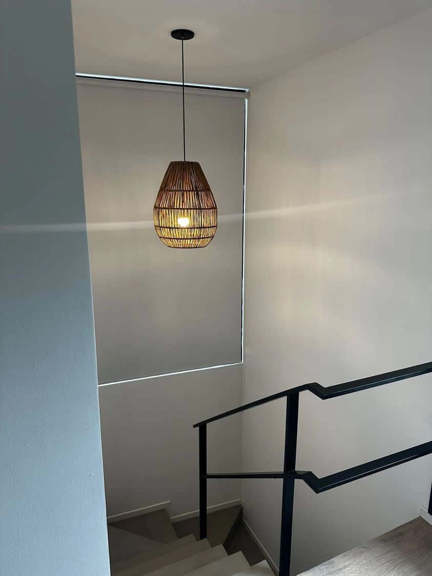 Lámpara com estructura de hierro hilada en kraft.